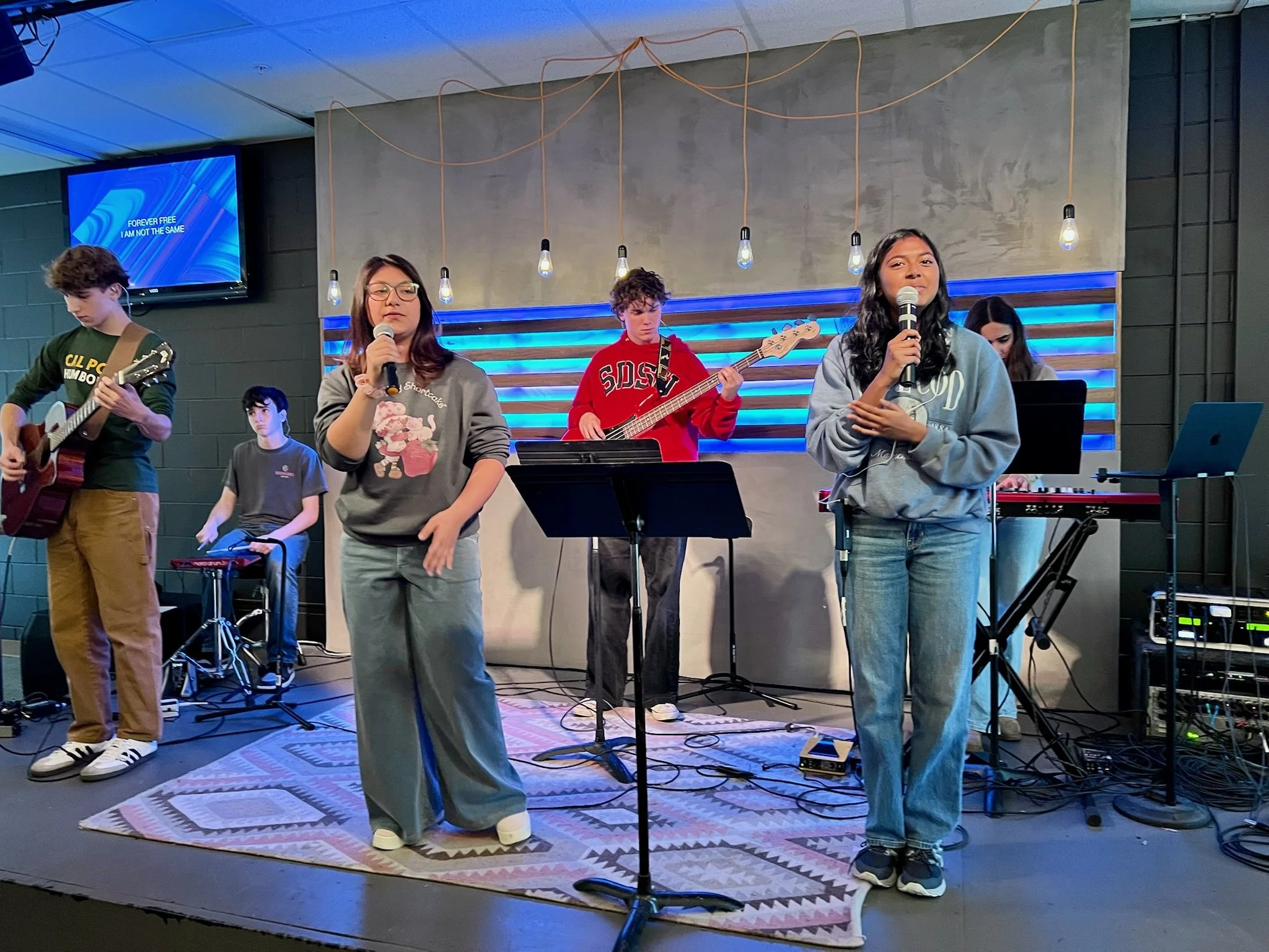 Students come together to worship, hear a message relevant to daily life, and grow in their relationship with Jesus.